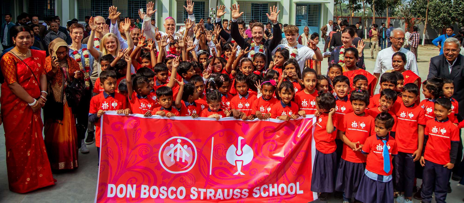 Engelbert Strauss hat in Kooperation mit Don Bosco Mission Bonn den Bau einer Schule im Nordwesten von Bangladesch realisiert. Im Februar 2024 wurde die Don-Bosco-Strauss-School im Beisein von CEO Steffen Strauss, einer Delegation aus Deutschland sowie Dr. Nelson Penedo, Geschäftsführer von Don Bosco Mission in Bonn, feierlich eröffnet.